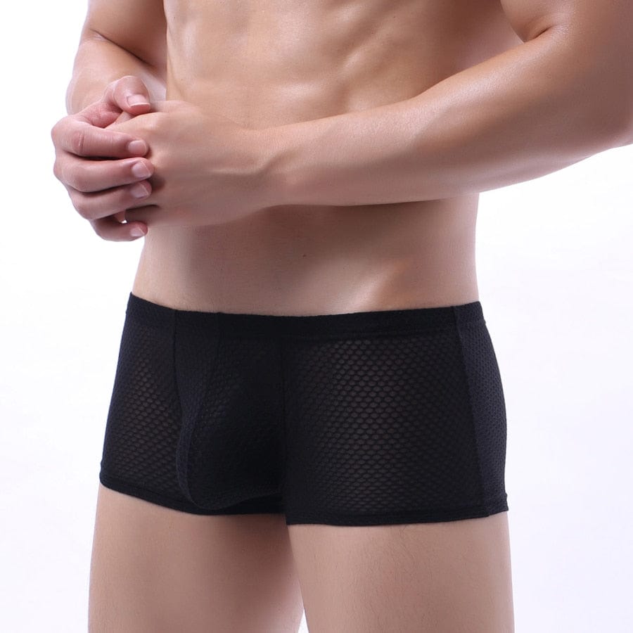Get ready for a throbbing climax in these ridiculously sexy trunks! They have a roomy convex pouch to lift your package and a curvy rear that accentuates your bum. Made from an ultra and sheer flexible fabric blend with a scaled mesh design. this pair doesn't compromise on anything.