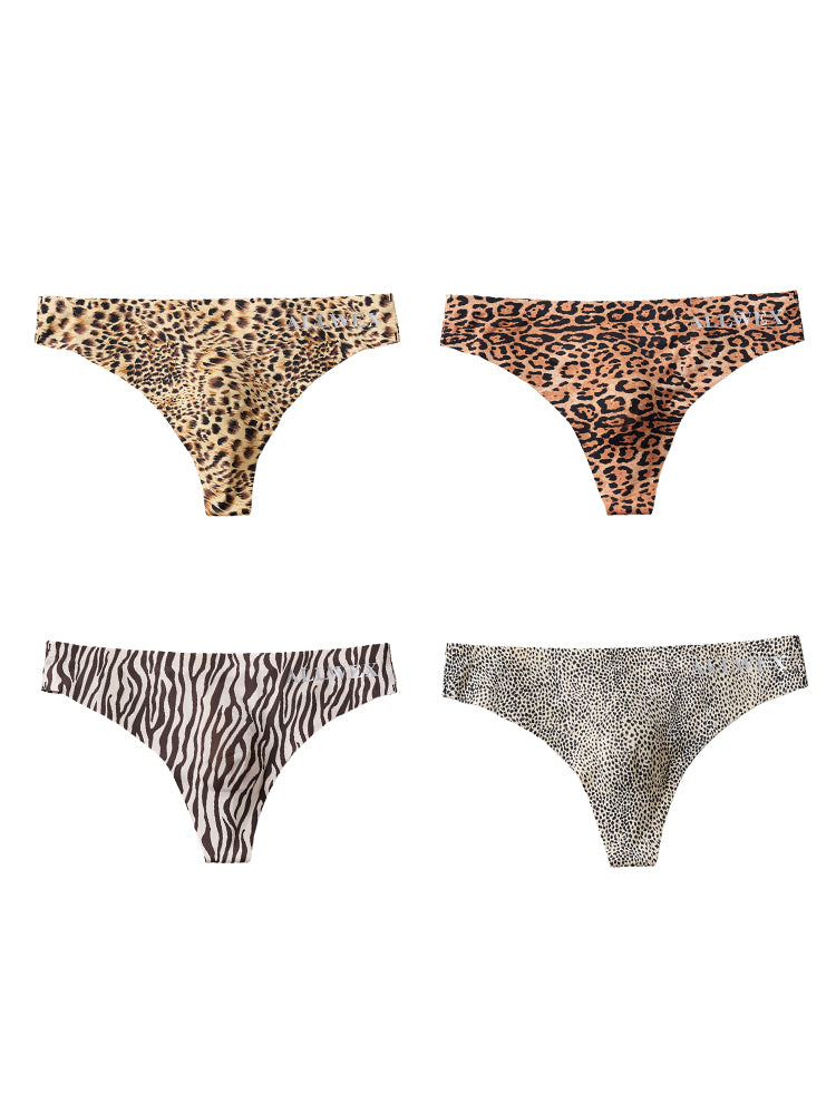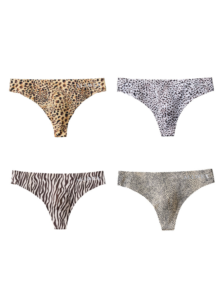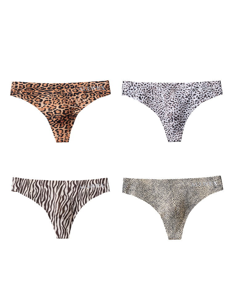 ORLVS 4 Pack Men's Seamless Leopard Print Low-Rise & Quick-Dry Thongs GAY UNDERWEAR 2026 Spring