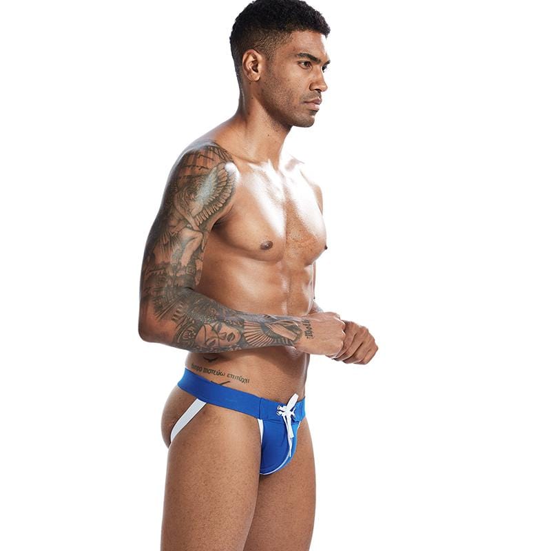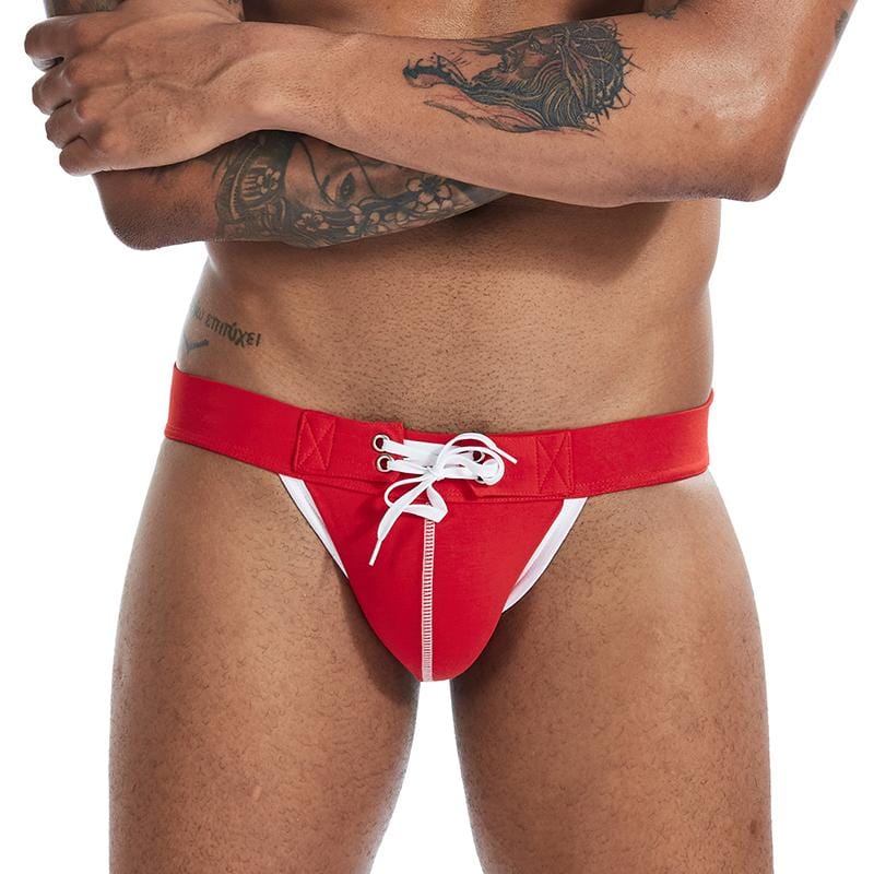 Showoff your body in this modern and sexy drawstring jock. It has a low-rise fit. a convex pouch. comfort-soft waist band. and supportive rear straps to help you show off your best assets. Limited quantities available for this sexy pair.