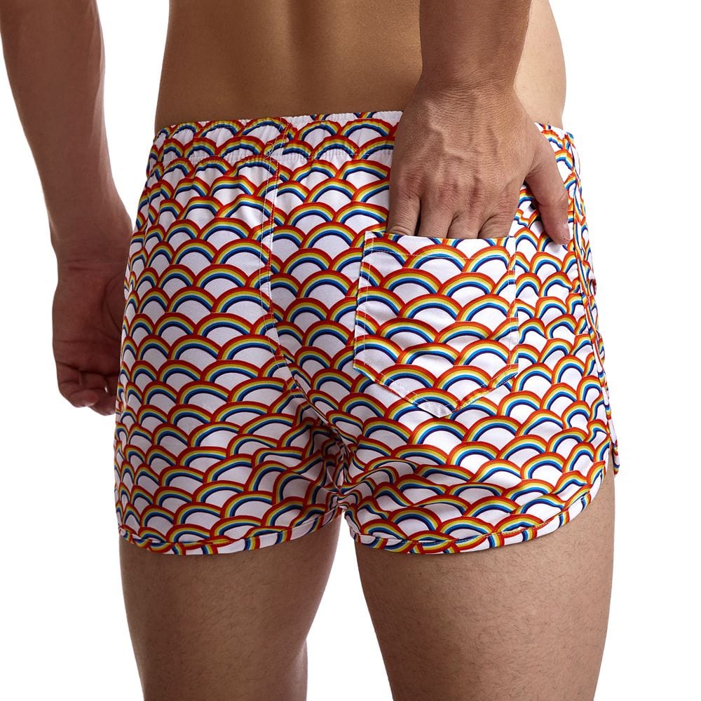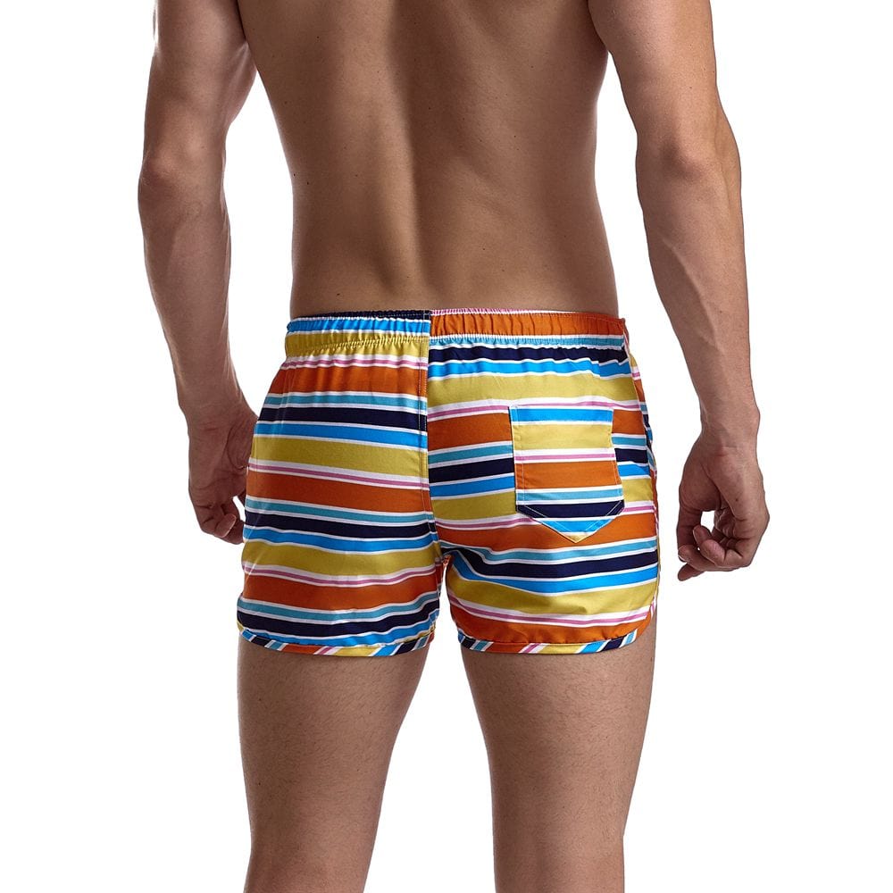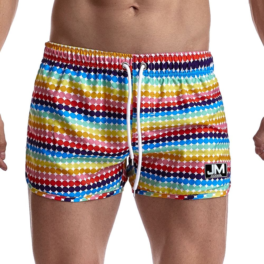 Show your colors in these thigh-high swim shorts! You'll be the envy of the beach in this pair that is just short enough. They have a classic cut. loud designs. are quick-drying. and will help you show off your summer bod!